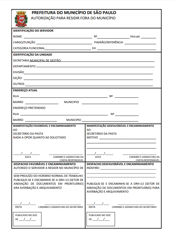 FORMULÁRIO | Autorização para Residir Fora do Município
