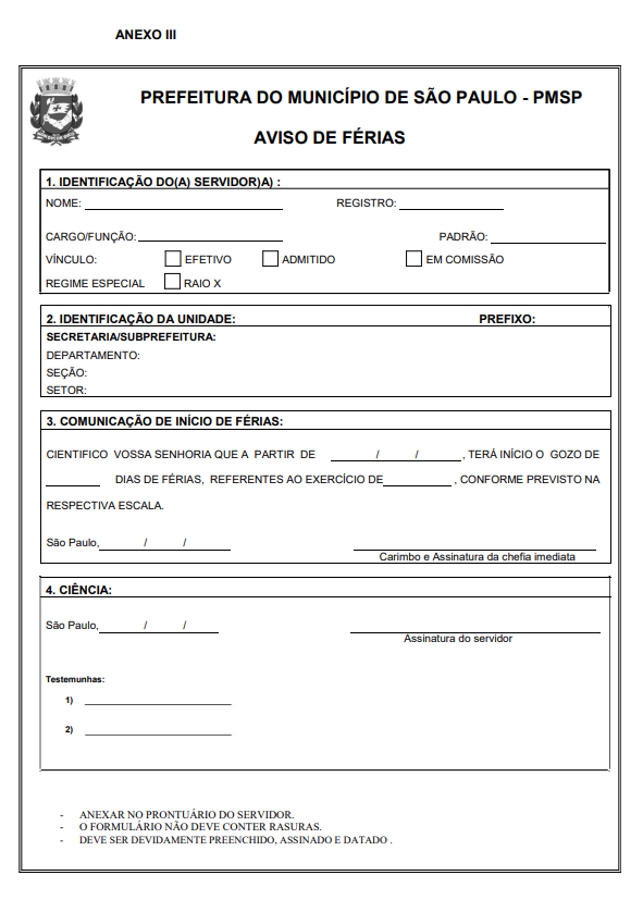FORMULÁRIO | Requerimento de Indenização de Férias
