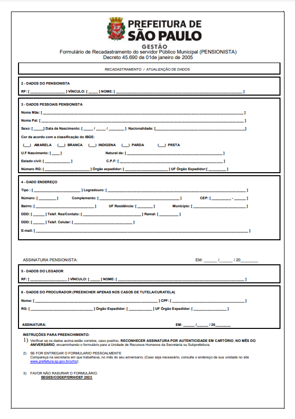 FORMULÁRIO | Recadastramento Pensionista