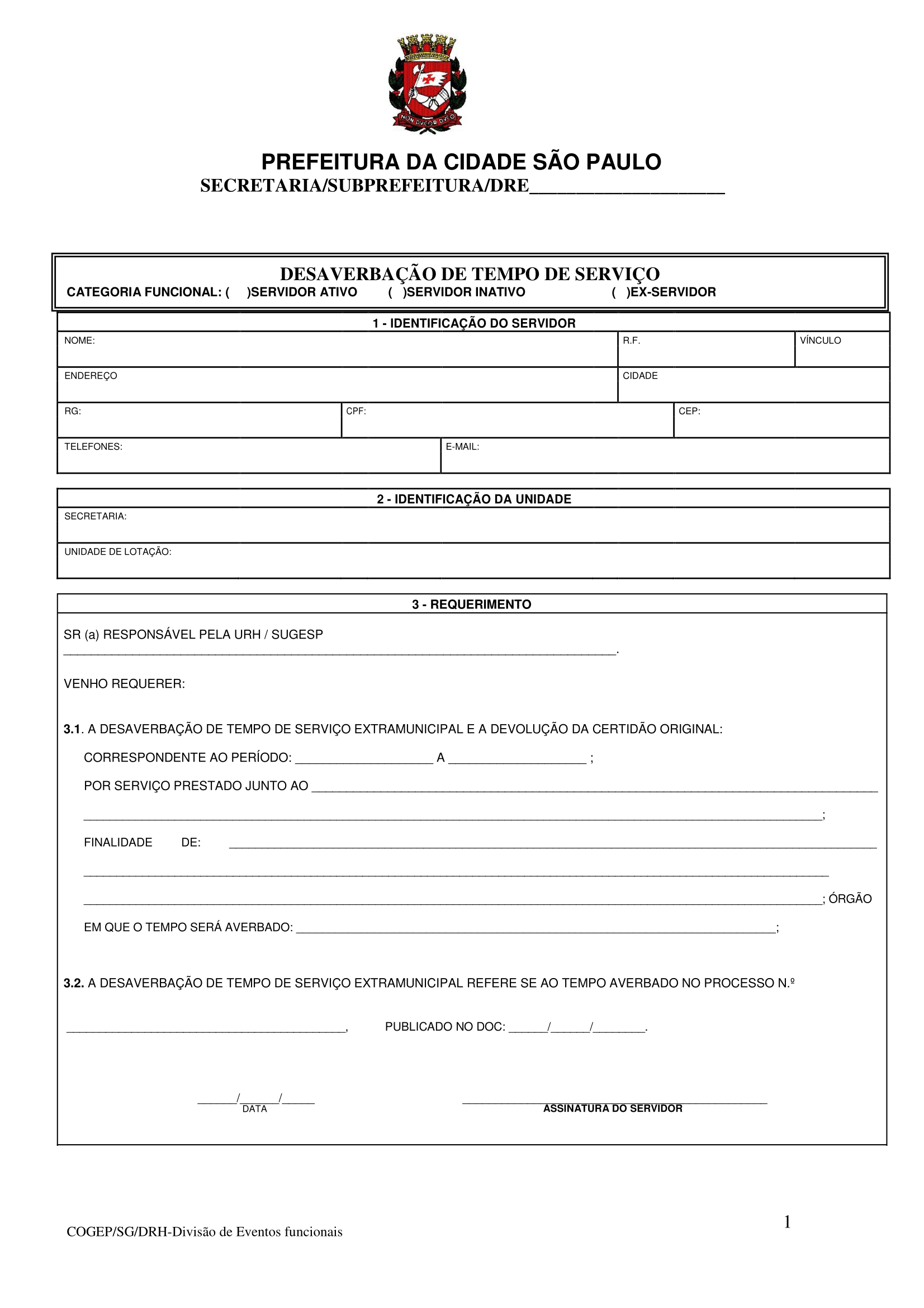 FORMULÁRIO | Desaverbação de Tempo de Serviço