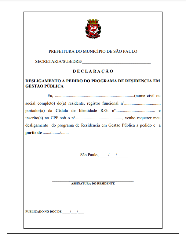 FORMULÁRIO | Desligamento da Residência pela URH