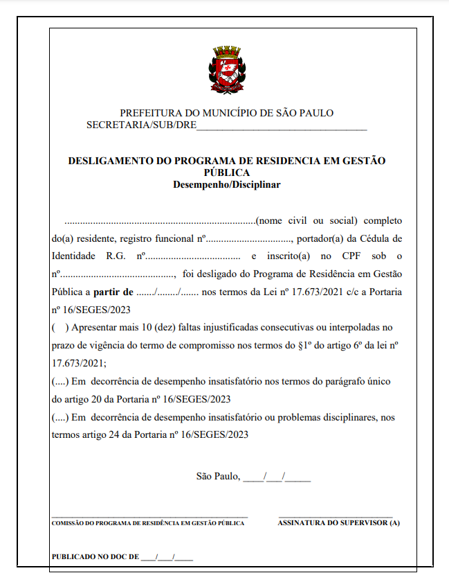 FORMULÁRIO | Desligamento da Residência pela URH