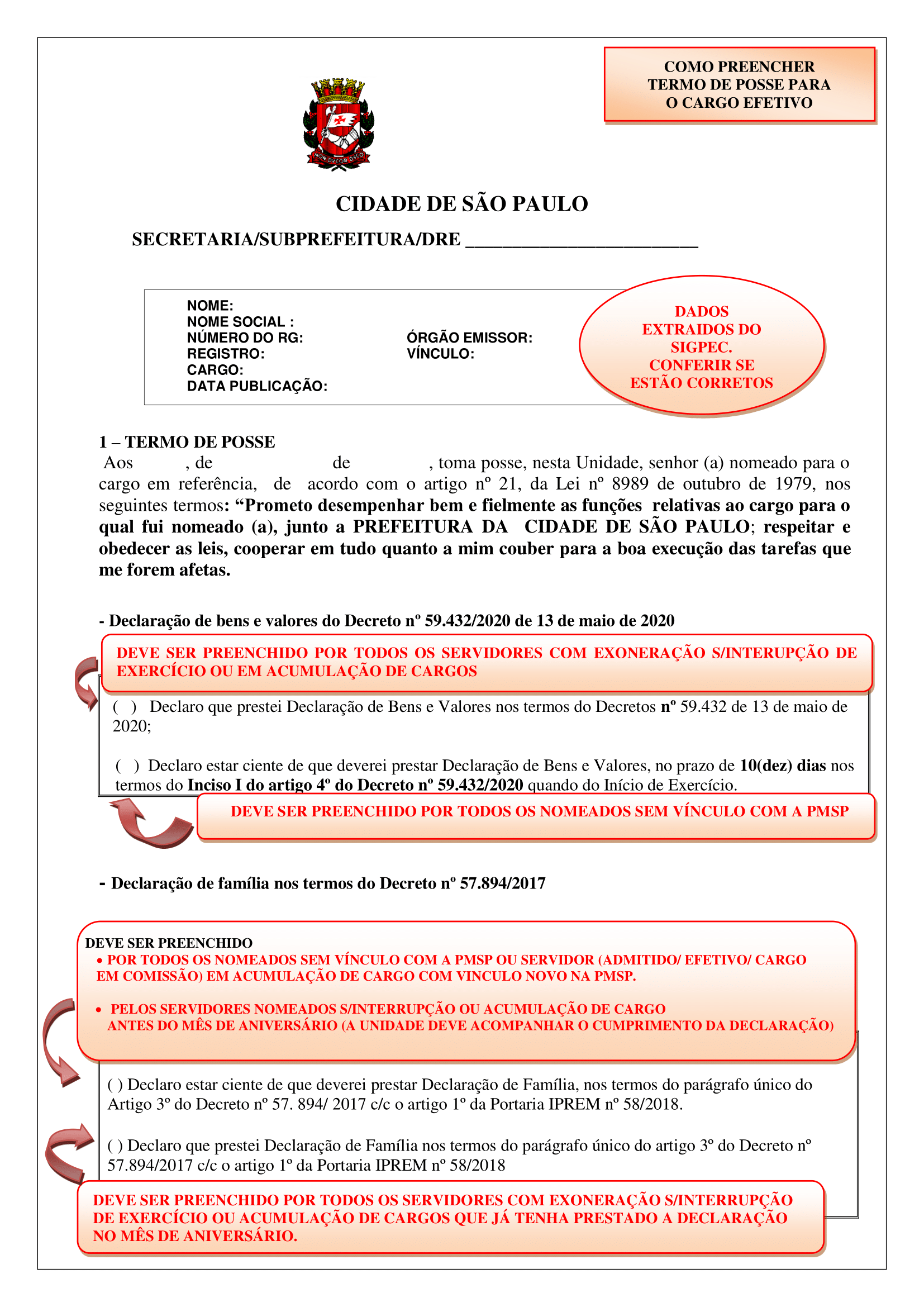FORMULÁRIO | Posse Efetivo - Como preencher